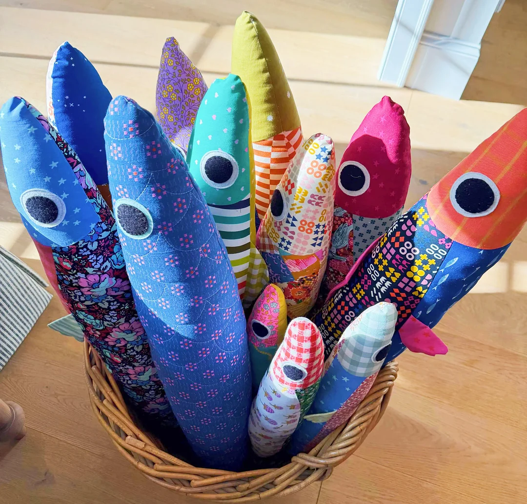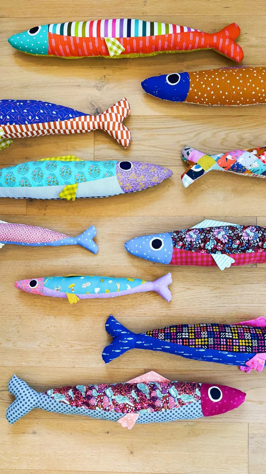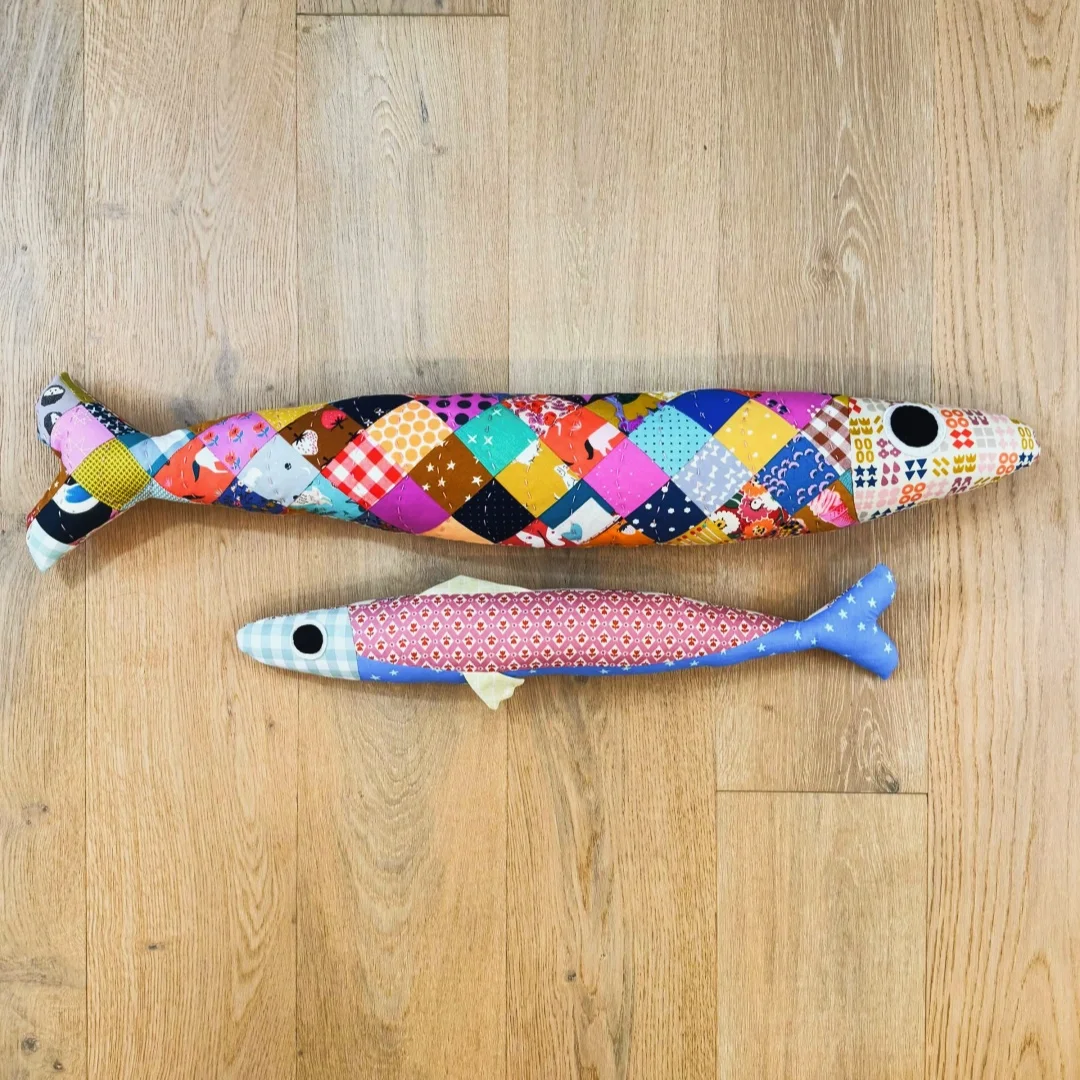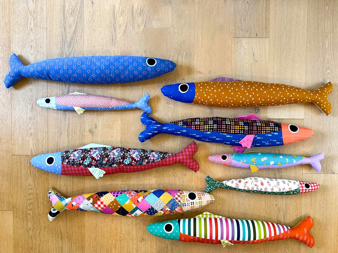 "I made one… then five! Everyone demands a sardine." Sew a squad in funky fabrics—linen, velvet, or glitter fleece.