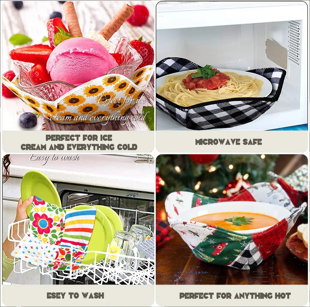 Only 100% cotton, non-metallic fabric, batting, and thread, should be used if you intend to put Bowl Cozies in the microwave. Other materials could catch fire. Works great for ice cream bowls too! Keep your hands warm while enjoying your favorite flavor.