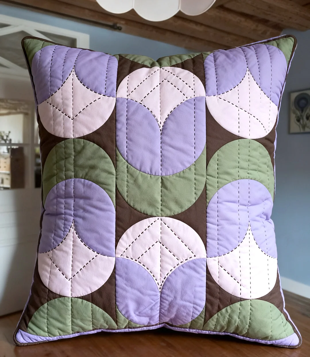 The soothing repetition of rounded geometric shapes makes this project both meditative and rewarding. Choose monochromatic fabrics for subtle elegance, or mix bold colors for vibrant statement pieces.