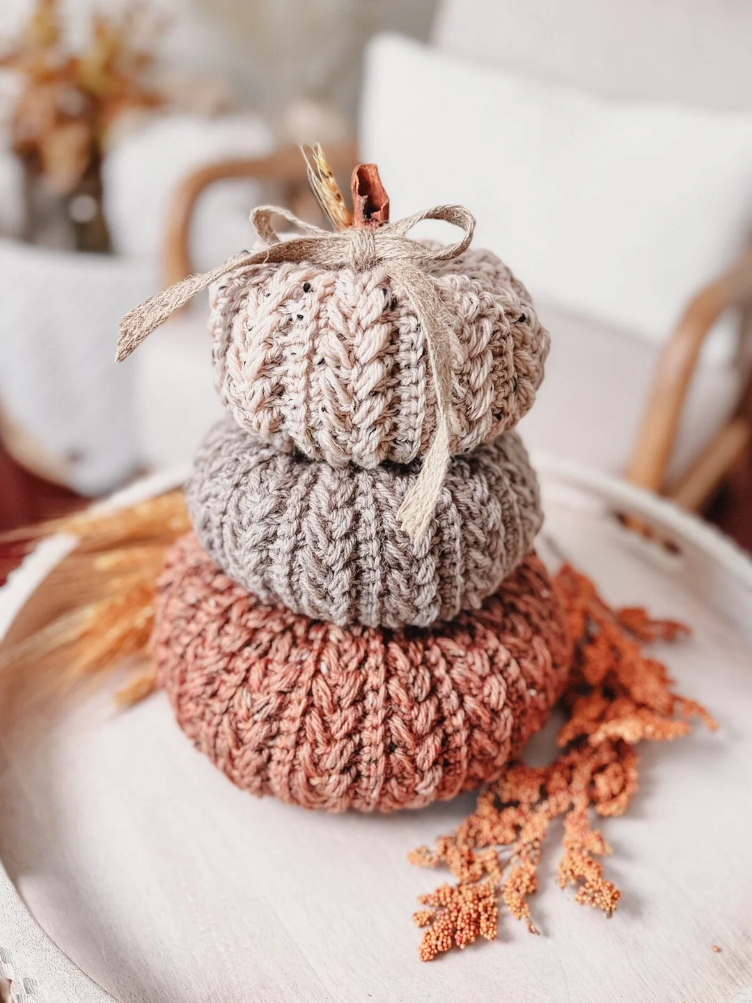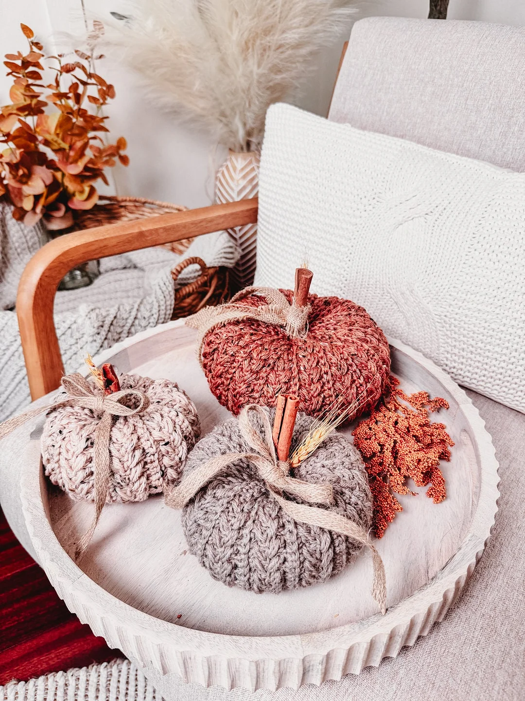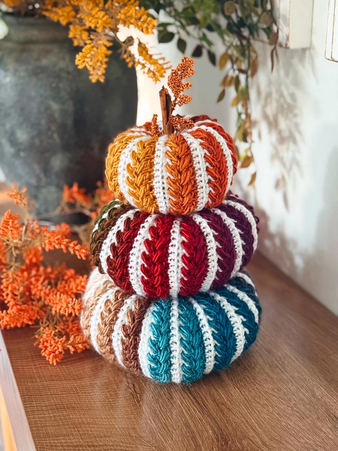 Perfect for adding a touch of handmade charm, this pattern offers three different sizes of textured pumpkins, bringing fall vibes to any room.