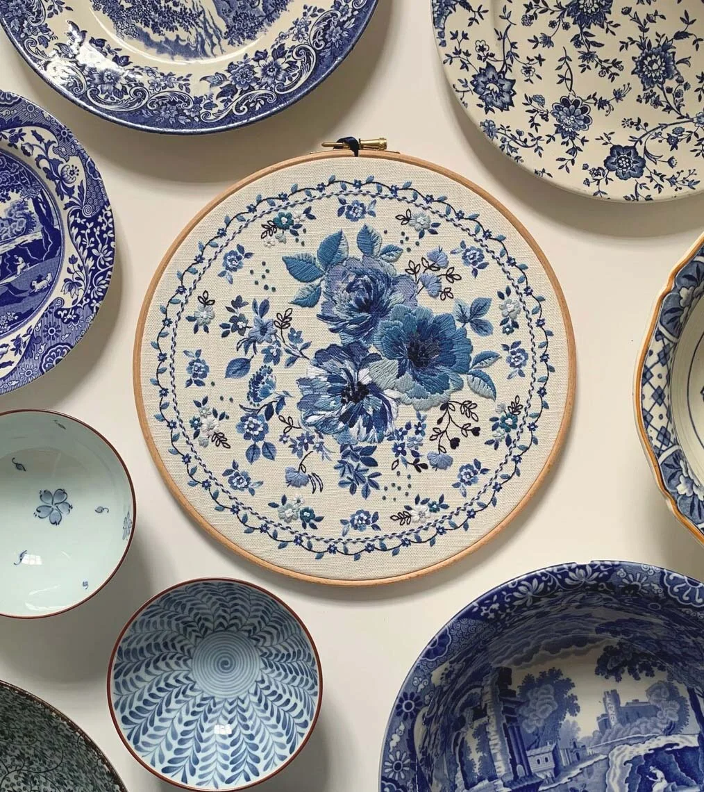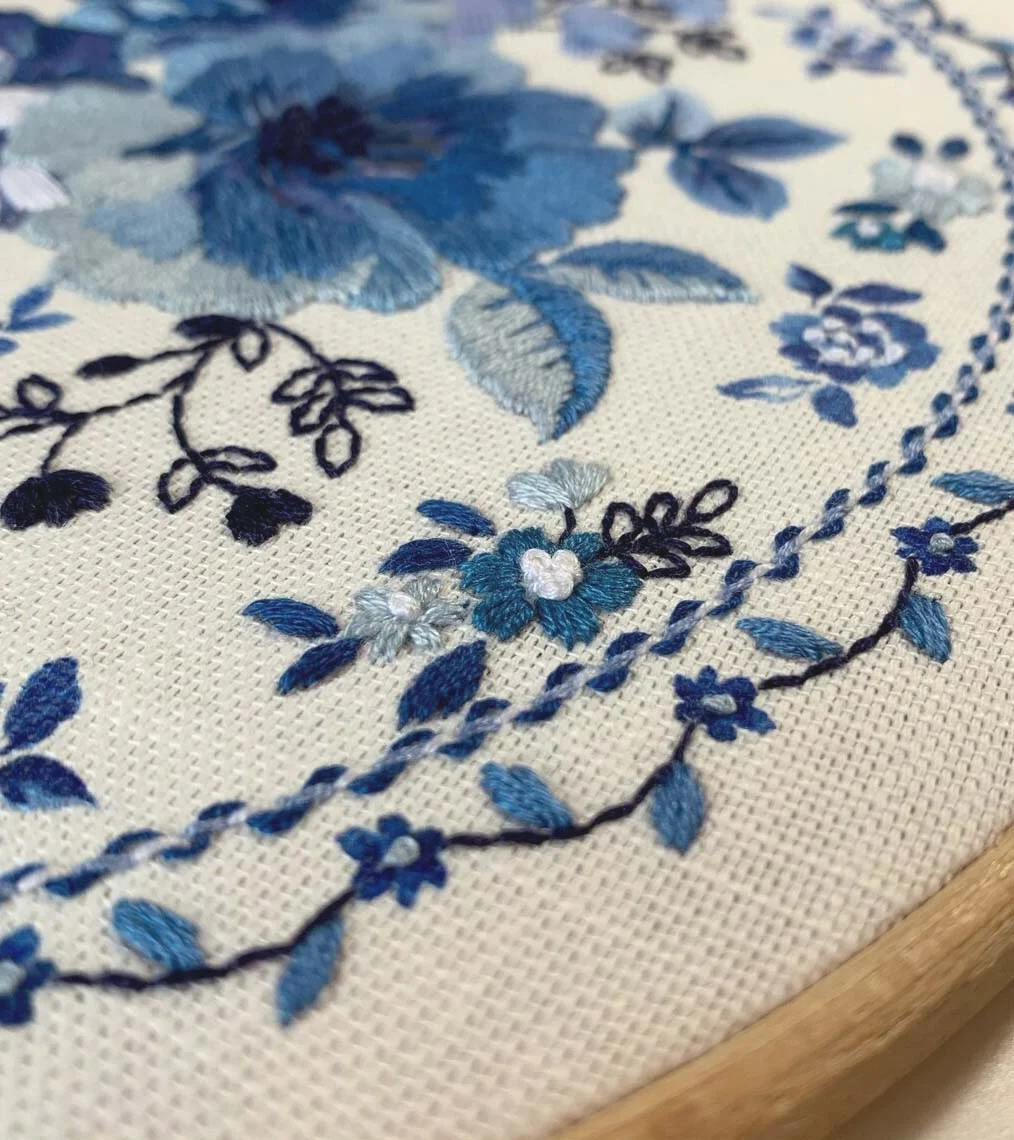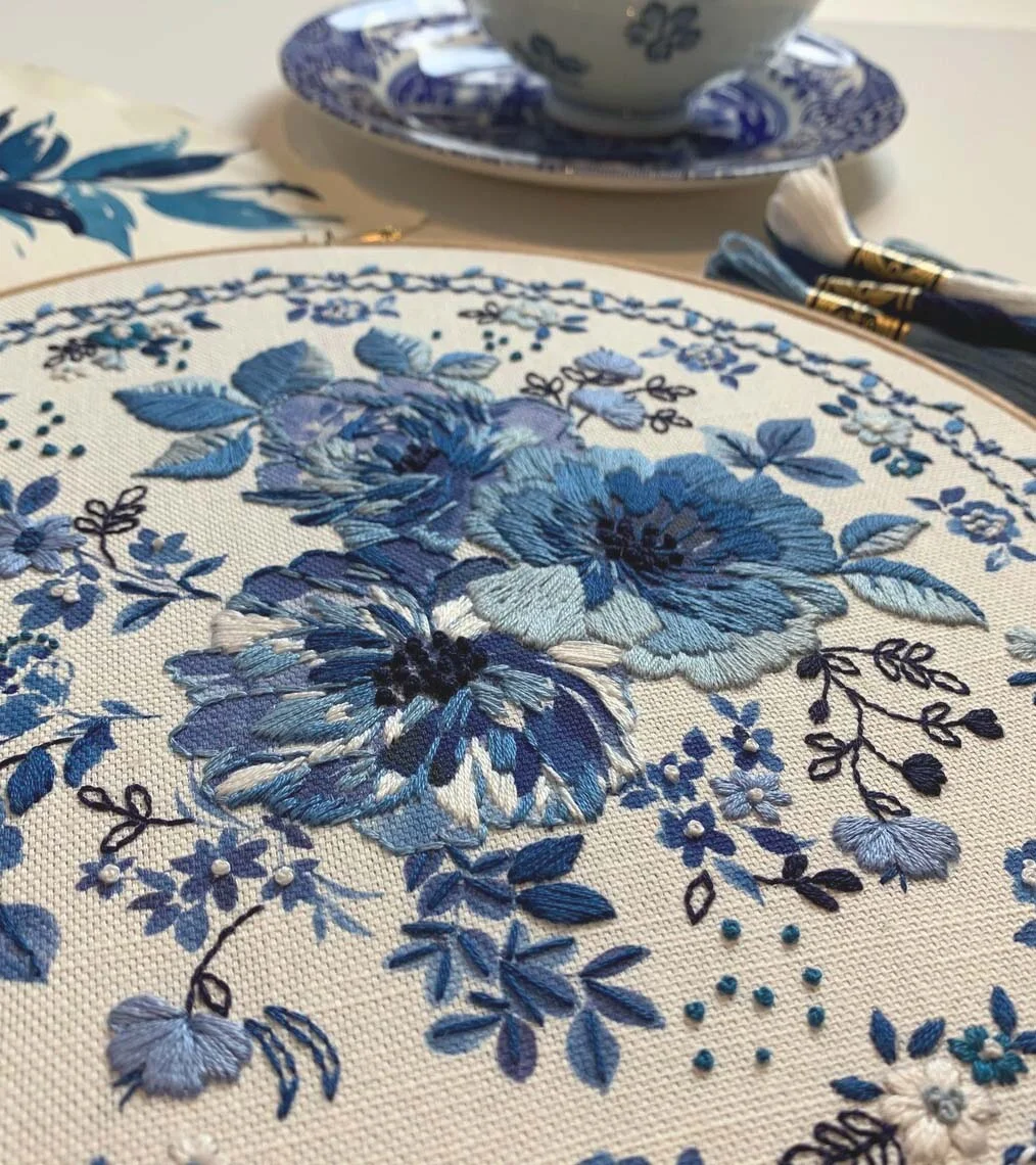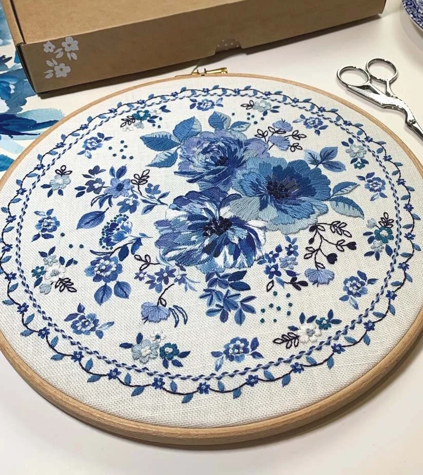 - Blue Floral Embroidery Kit