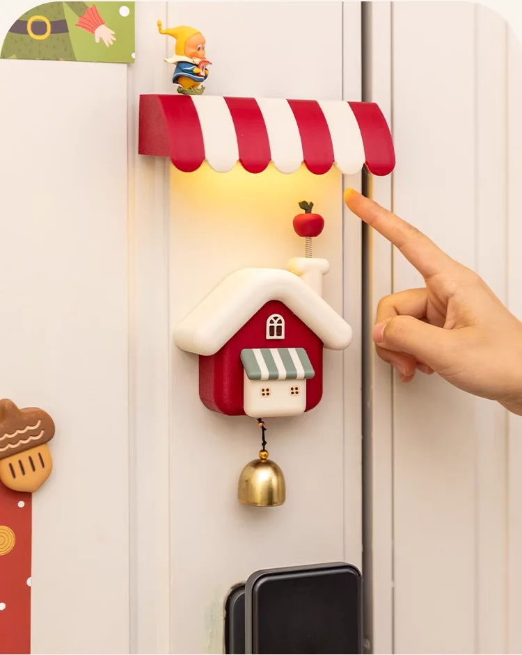 This charming doorbell brings holiday magic to any entrance. Featuring an exclusive design with a festive Christmas tree and cozy cottage shape, each piece comes with a delicate bell that chimes softly with every opening and closing.