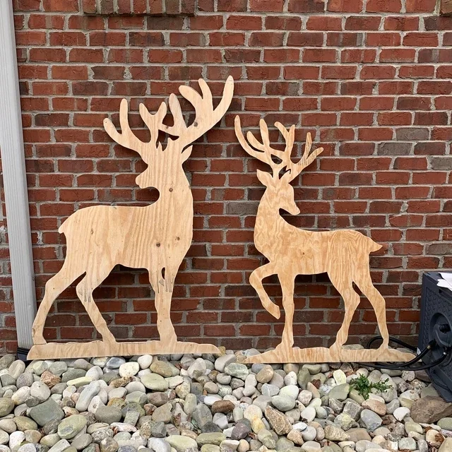 You can print from home to make a large Male, Female Reindeer or Christmas tree wood silhouette cutout for your Christmas decor.