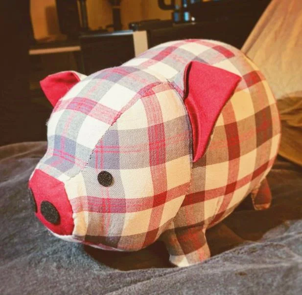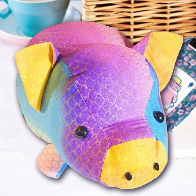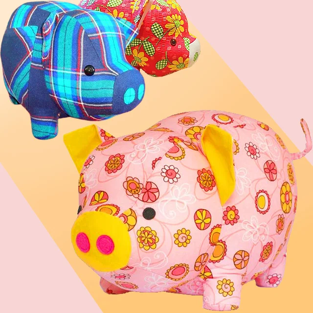 The Piggy on the photo has been made with cotton fabric, but any fabric will work with this Chubby Piggy Pattern Templates.