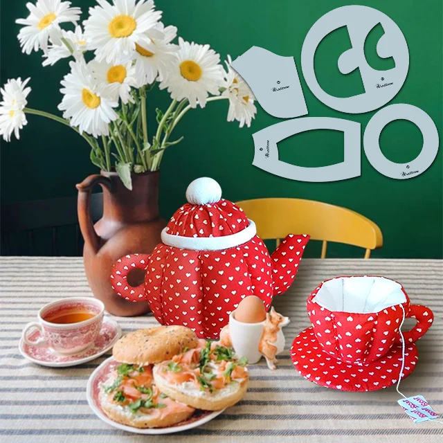 Use a fabric or your scraps to create this delightful set of teapots, cups, and saucers.