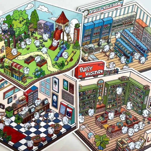 These adorable stickers let you create anything from a cozy shop to a vibrant park. Have fun at the puppy holiday park, or pick up some tasty treats from the supermarket.