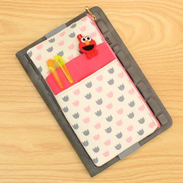Slide it onto the cover and fill it with your favorite pens, pencils, sticky notes, rulers, page flags, and more, and you're ready to go!