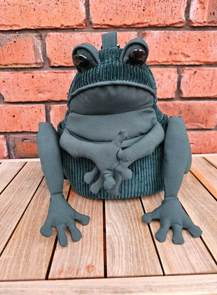 🐸🎒 Meet your new favorite backpack — a playful, handcrafted frog-shaped bag that stands out anywhere! With its cute sitting pose, round head with 3D eyes, and cross-legged front paws, this design is both whimsical and functional. The back zipper offers security, while the spacious interior fits all your daily essentials.