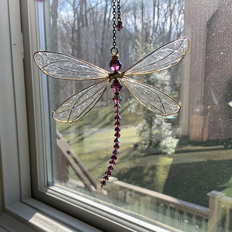 Purely handmade dragonfly suncatcher is the perfect choice to bring you a happy mood when the suncatcher meets the sun will bloom colorful light so that people feel stunning.