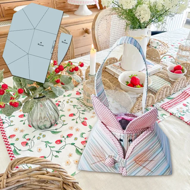 This fabric basket features bunny ears on top and is sure to add a fun touch to your Easter decor.