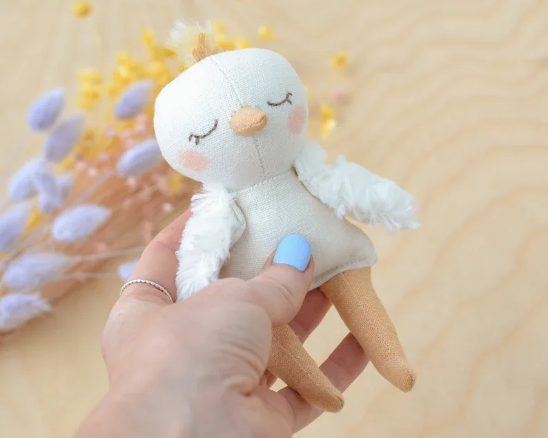 Mini Chicken Plush toy, dress up in our versatile Maddy jumpsuit and dress and accessorize with a cute bow or bow tie.
