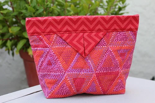 This cute little bag has a special feature that’s not apparent at first glance. Pull the triangular tabs and it snaps open. A little pressure and it snaps shut. That makes this clever bag useful for so many things.