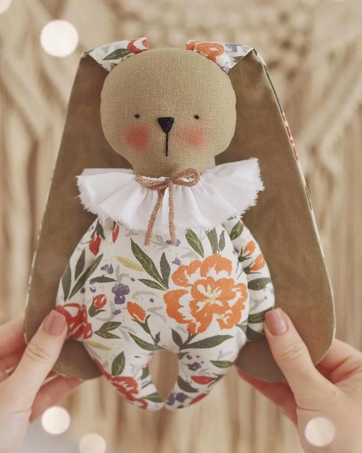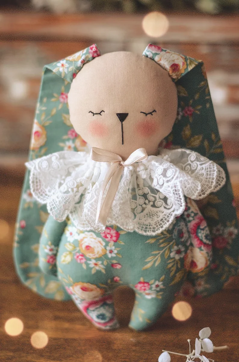 You can use any combination of fabrics and colours to make your own beautiful bunny.