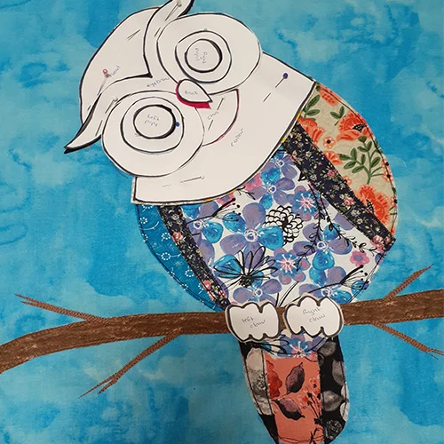 Go wild with your fabric selection and embellishments, owl is printed fabric that I fussy cut.