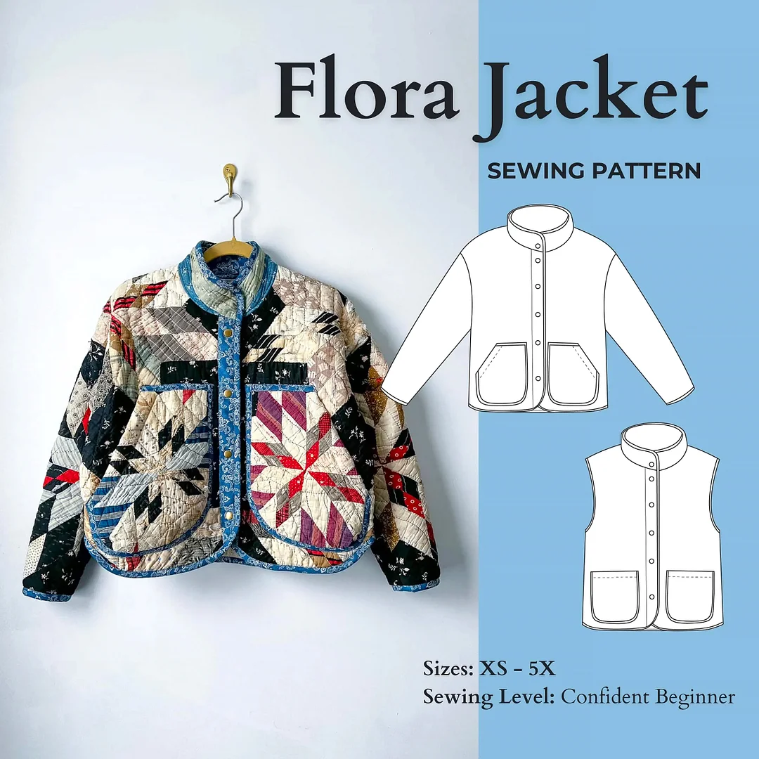 🌸🧵 A versatile, slightly boxy jacket and vest pattern designed for crisp days and effortless style. With its quilted texture and relaxed fit, the Flora layers beautifully over sweaters and dresses.