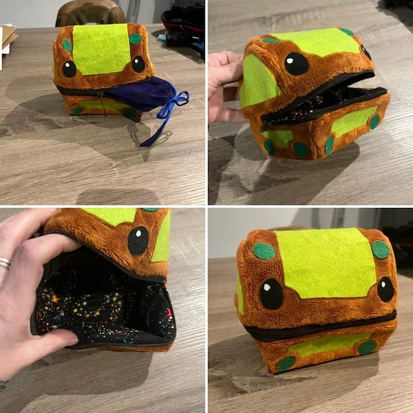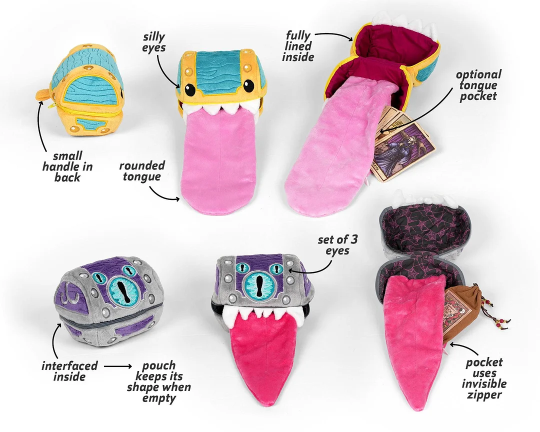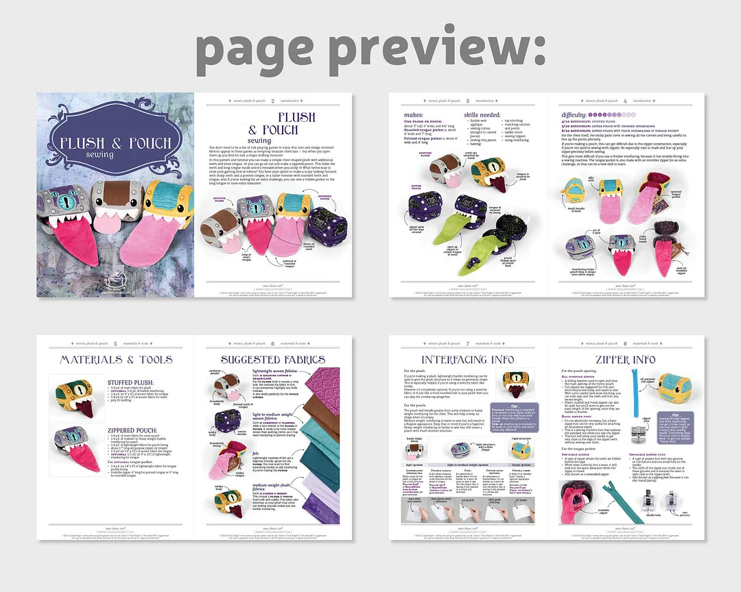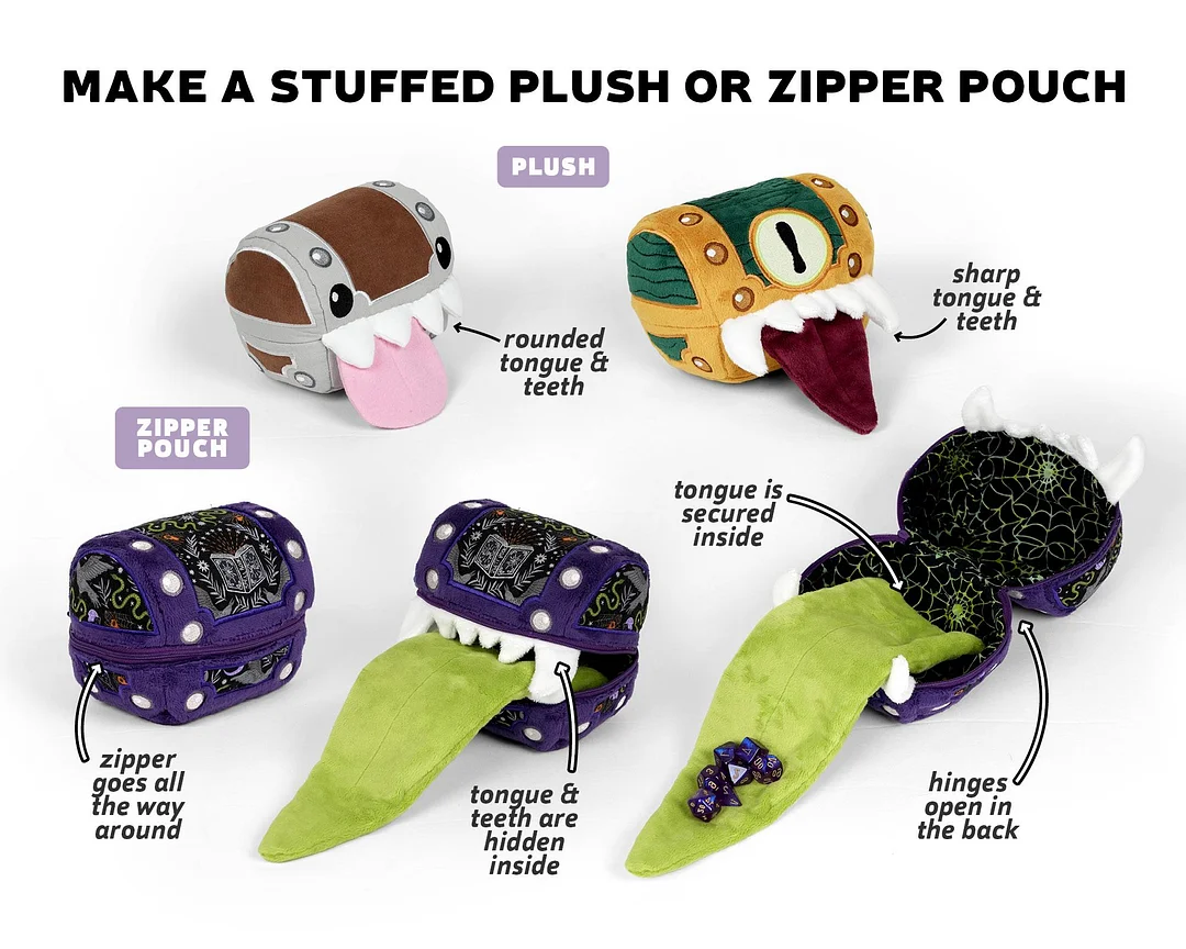 Get ready to make a one-of-a-kind, quirky treasure chest with this sewing template set! Designed for those who love a fun challenge, you can sew a creature chest complete with teeth, a tongue, and eyes, or turn it into a fully lined zippered pouch with hidden details. For an extra surprise, add a secret pocket inside the tongue!