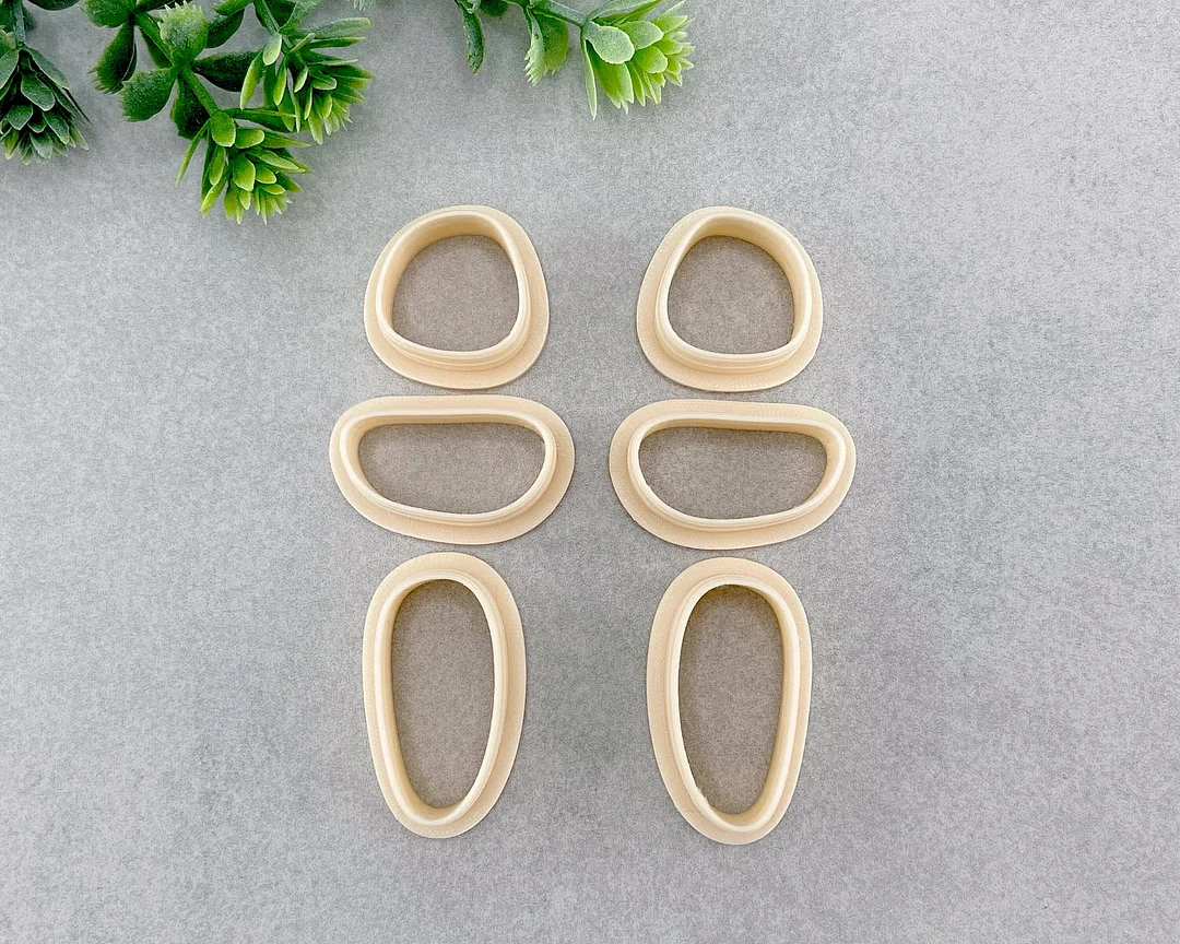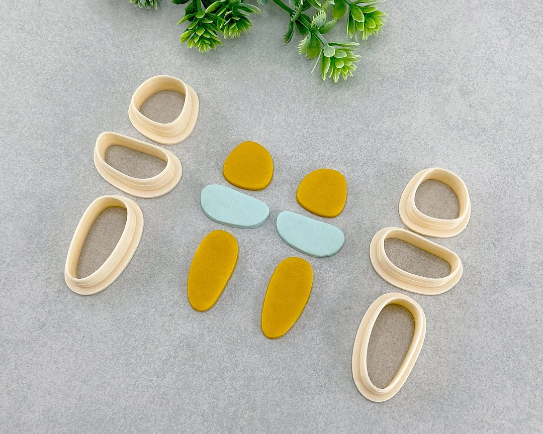 The Organic Pebble Dangle Earring Clay Cutter Set is designed for your polymer clay earrings, cookies, and fondants.