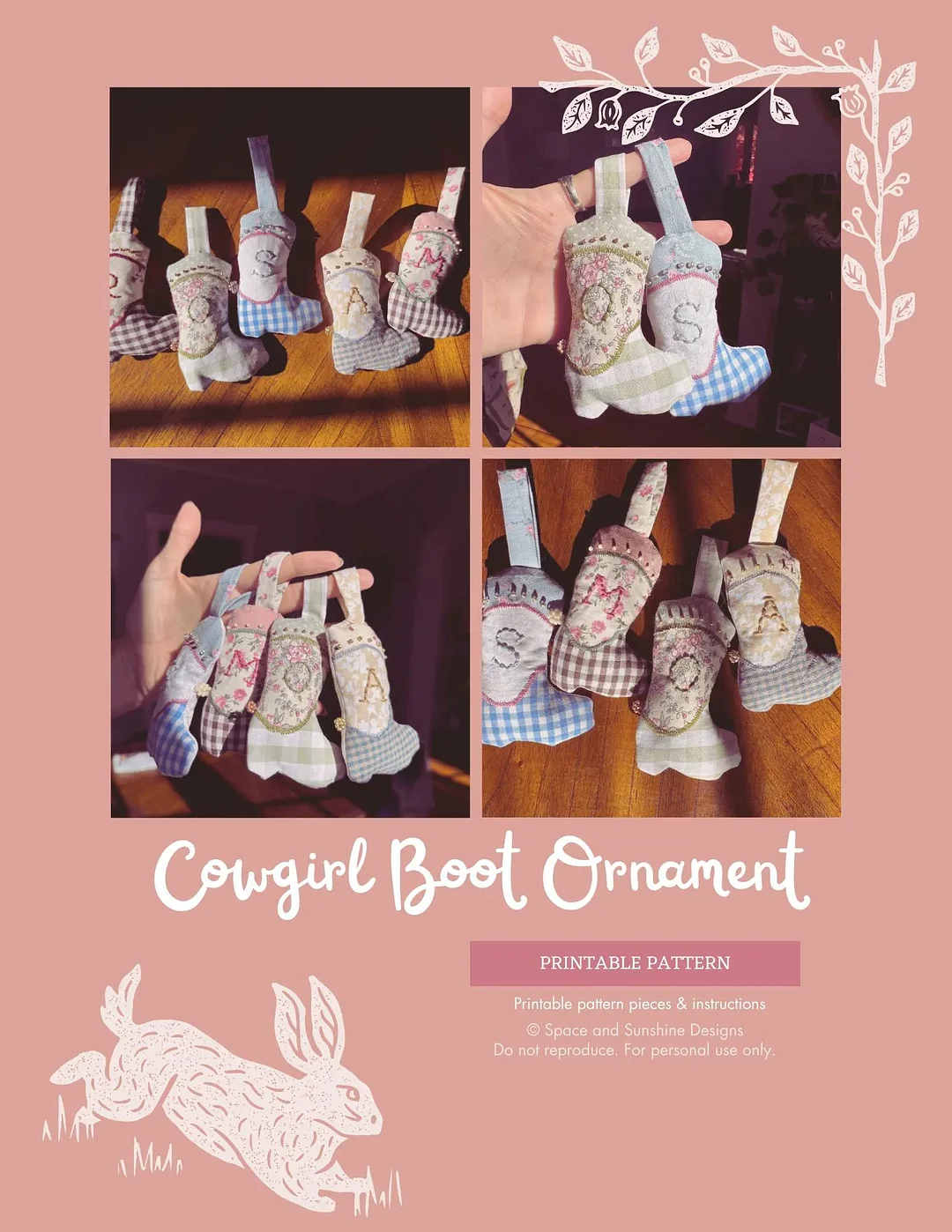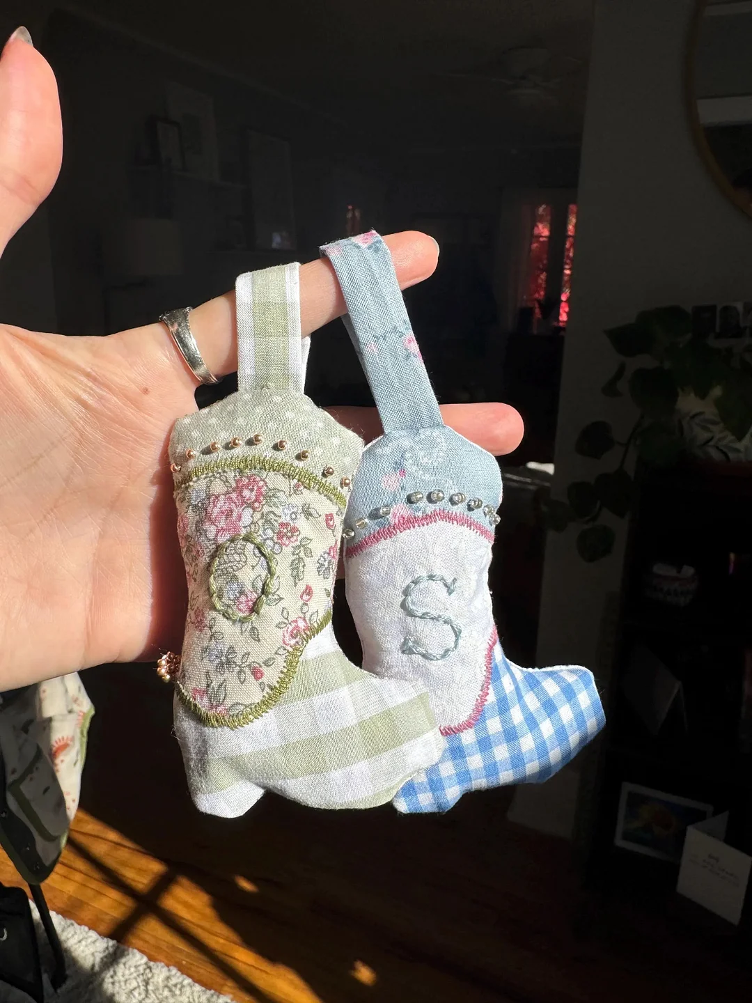 Add a touch of whimsy to your home or nursery with this handmade Cowgirl Boots hanging ornament.