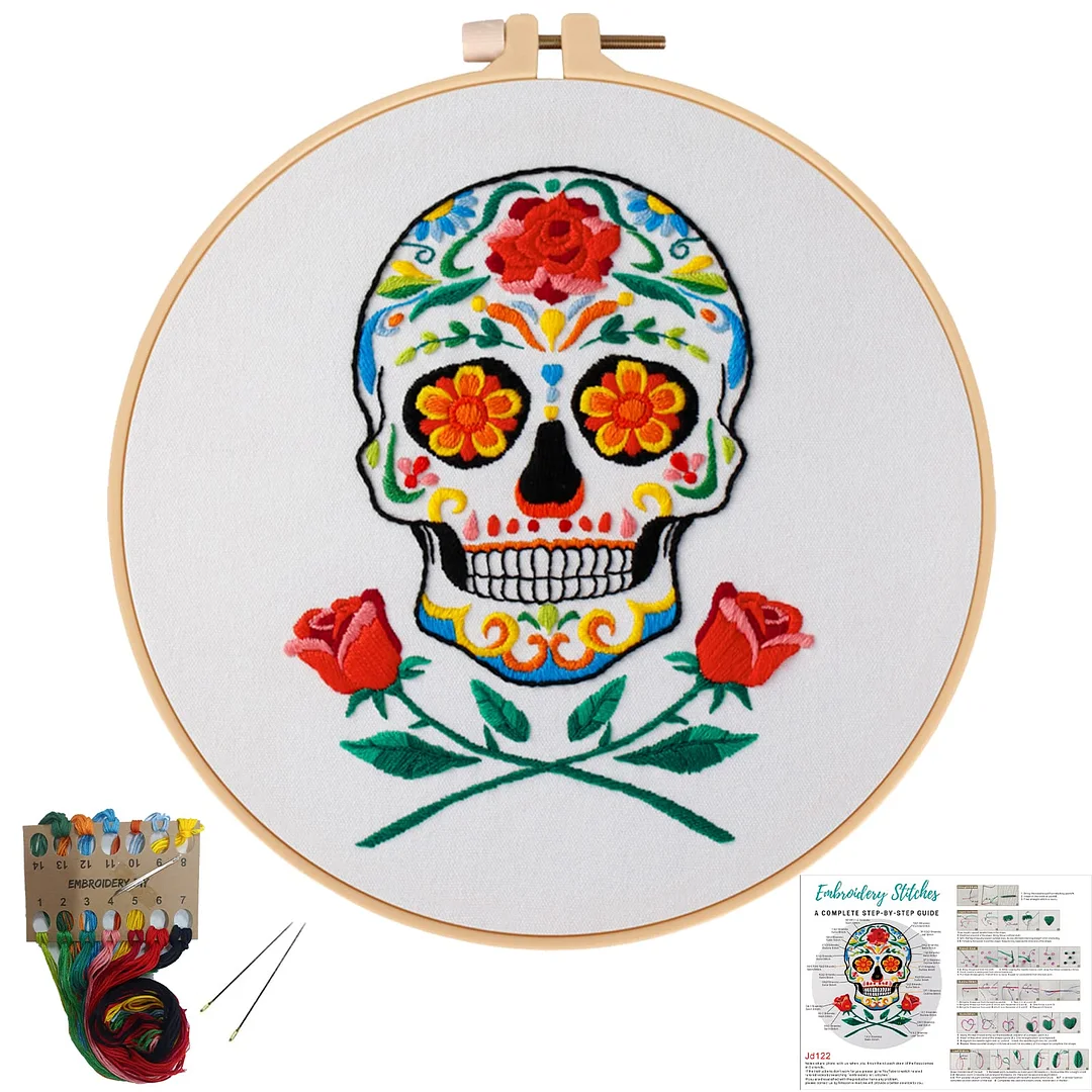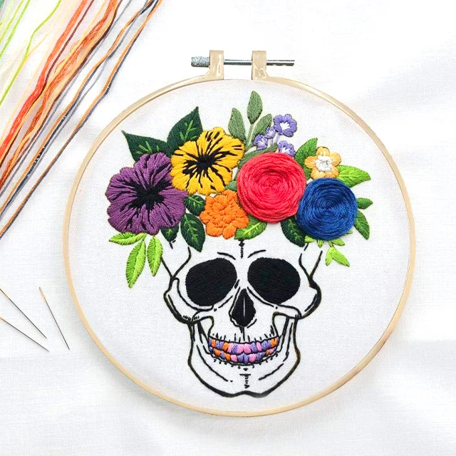 🌺💀🎨The Skull With Flowers Embroidery Kit is incredibly versatile and can be used to create stunning Day of the Dead (Día de los Muertos) inspired artwork as well. The intricate design, featuring skulls adorned with vibrant flowers, perfectly captures the essence of this rich and colorful Mexican tradition.
