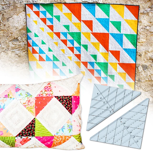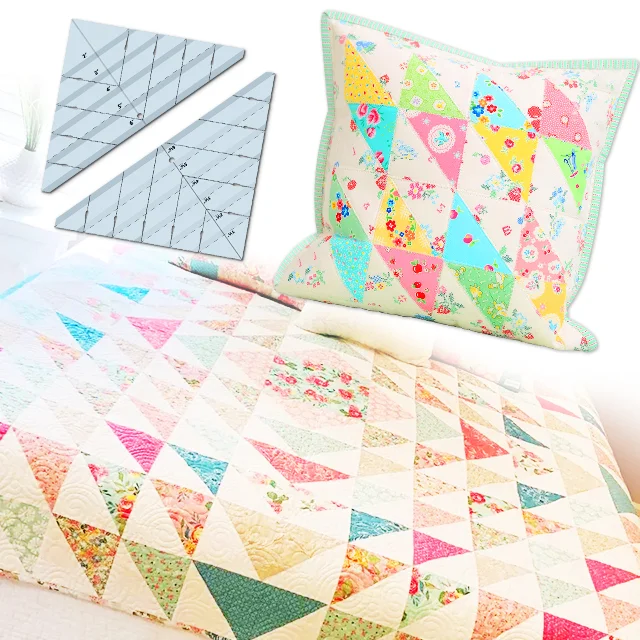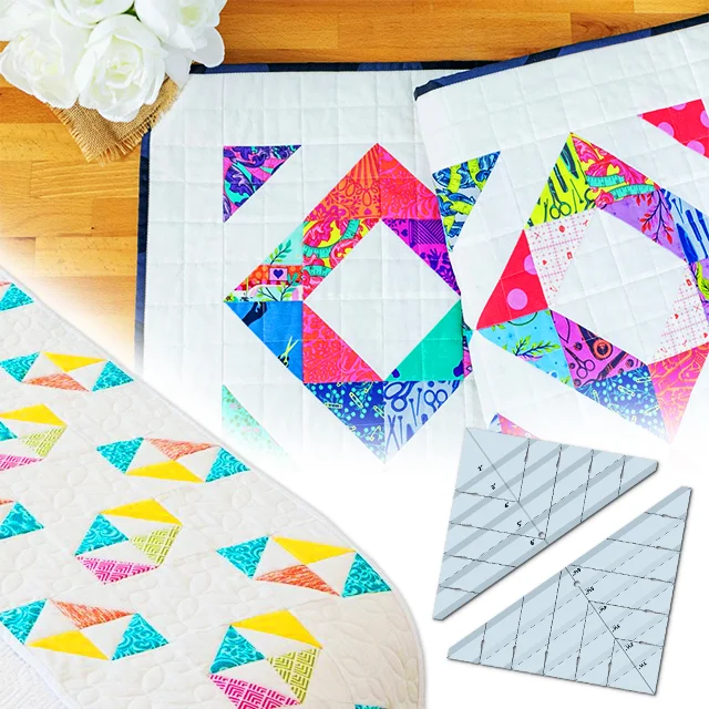 Other uses include: square-up hour glass blocks, strip piecing of half-square triangles, strip-tube method of block construction and fussy cutting.