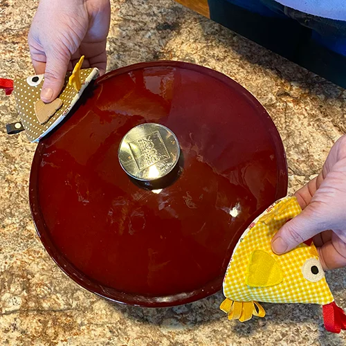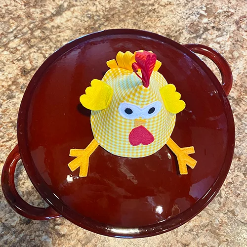 These little pot holders are perfect for removing hot lids or handling hot pots. They can sit on the lid or look cute sitting on a shelf.