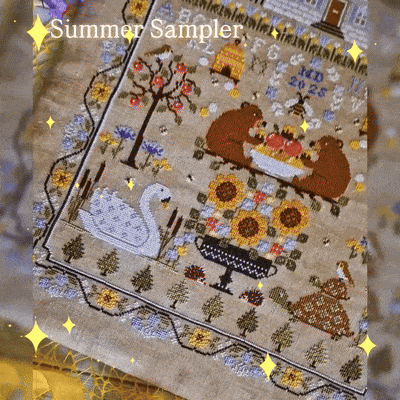 Stitch a sun-drenched sampler (12"x17") featuring multilingual "ESTATE" (Italian) + "ETE'" (French). All materials included!