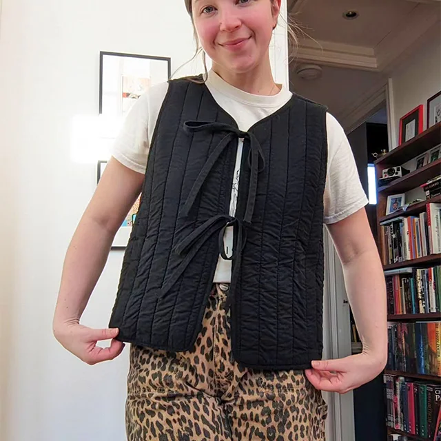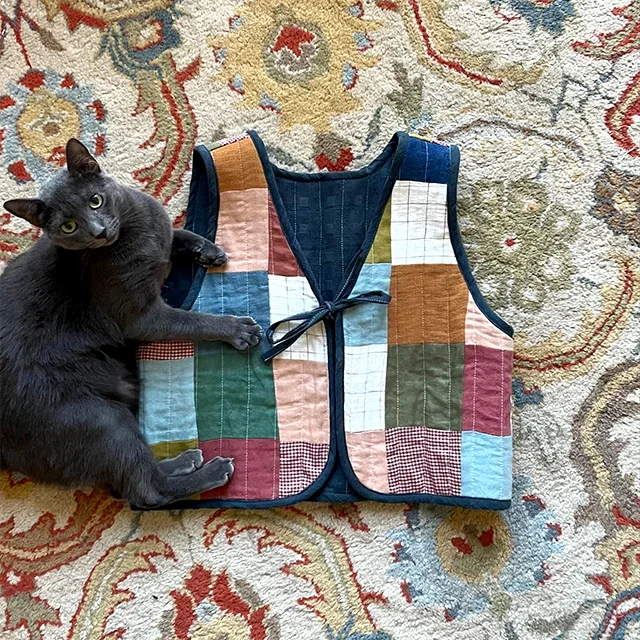 This reversible vest pattern offers versatility and style, allowing you to craft a truly personalized piece. With four front design options and customizable lengths, it’s a wardrobe staple that you’ll reach for again and again. Whether you prefer a tie-front v-neck or a buttoned high neck, cropped or full length, this pattern is tailored to suit your unique taste.