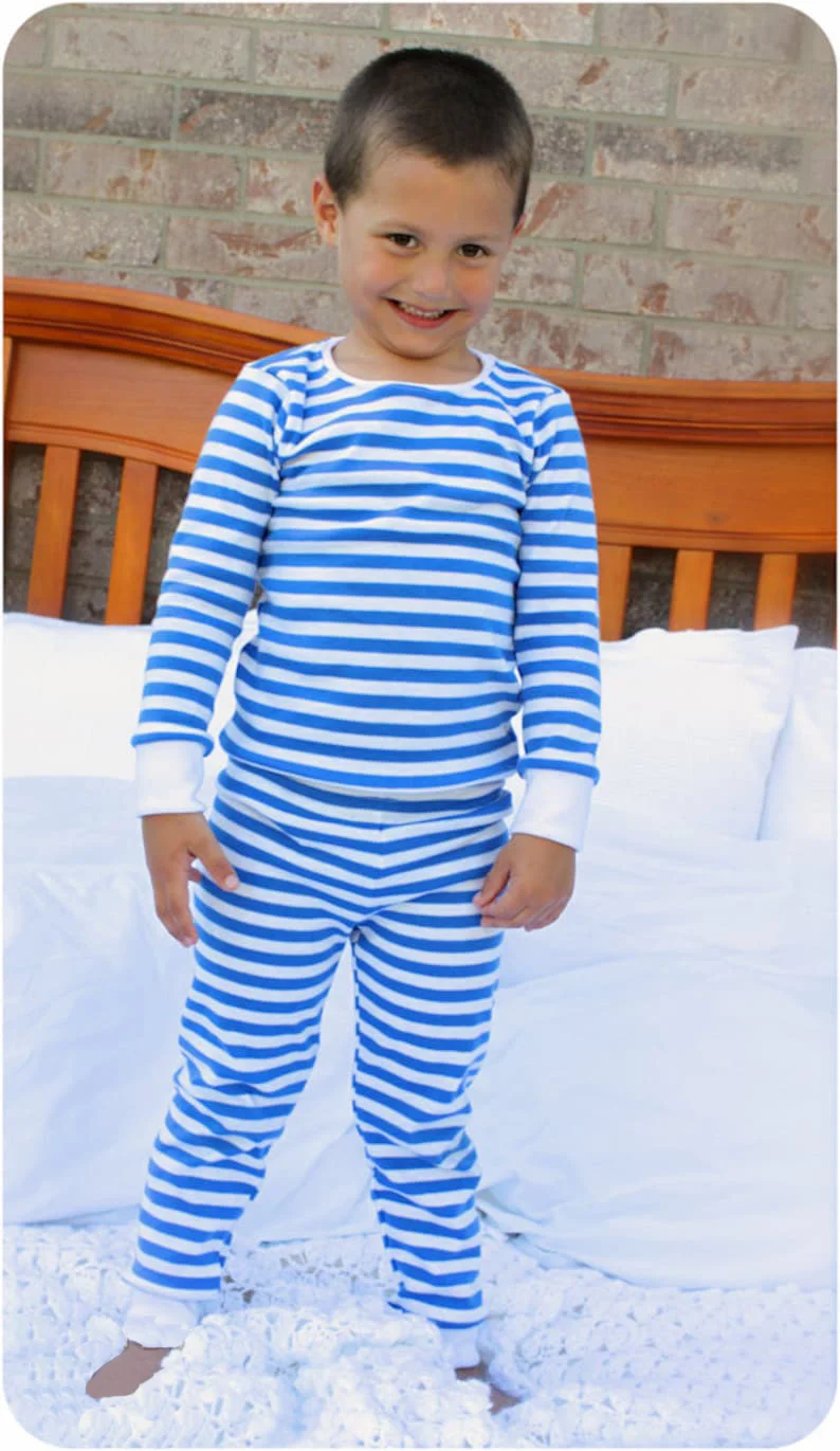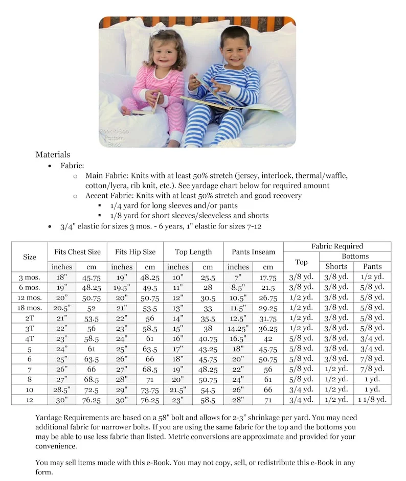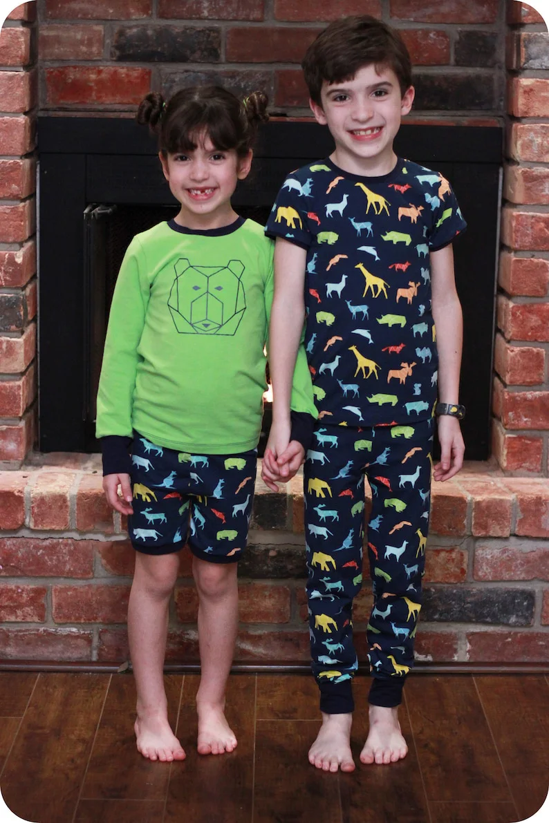 Keep your little ones cozy all year round with the Pajamas Sewing Pattern! This pattern includes pants, shorts, long sleeve top, short sleeve top and a tank.