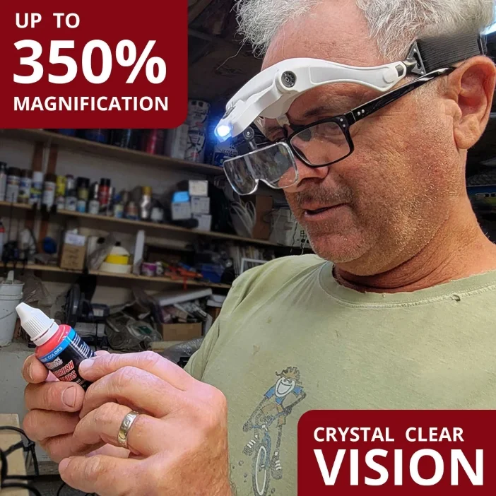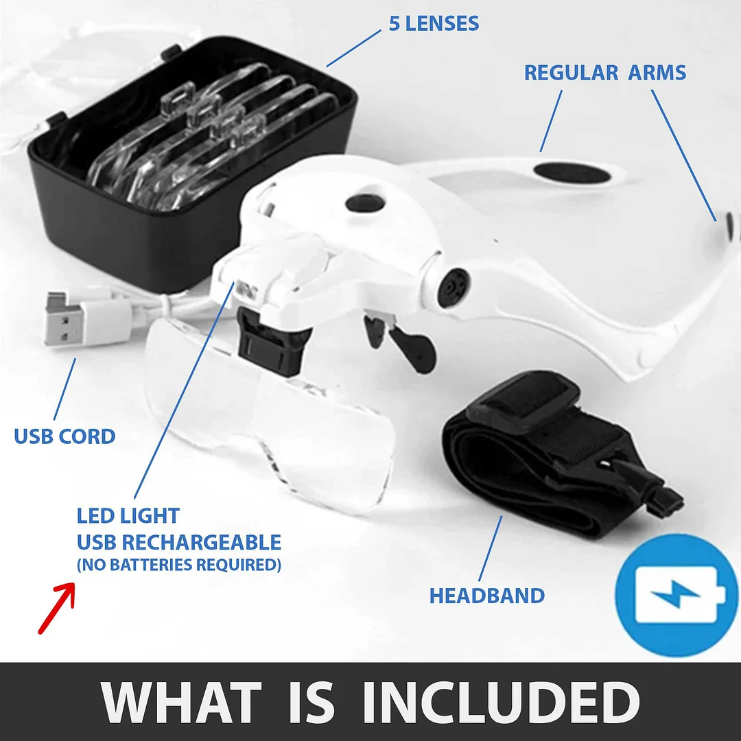 It is also equipped with an adjustable LED Glass Lamp near your forehead area of the Vision Magnifying Glasses, which provides maximum visibility for you to complete your piece no matter how dark or dimly lit your working environment is.