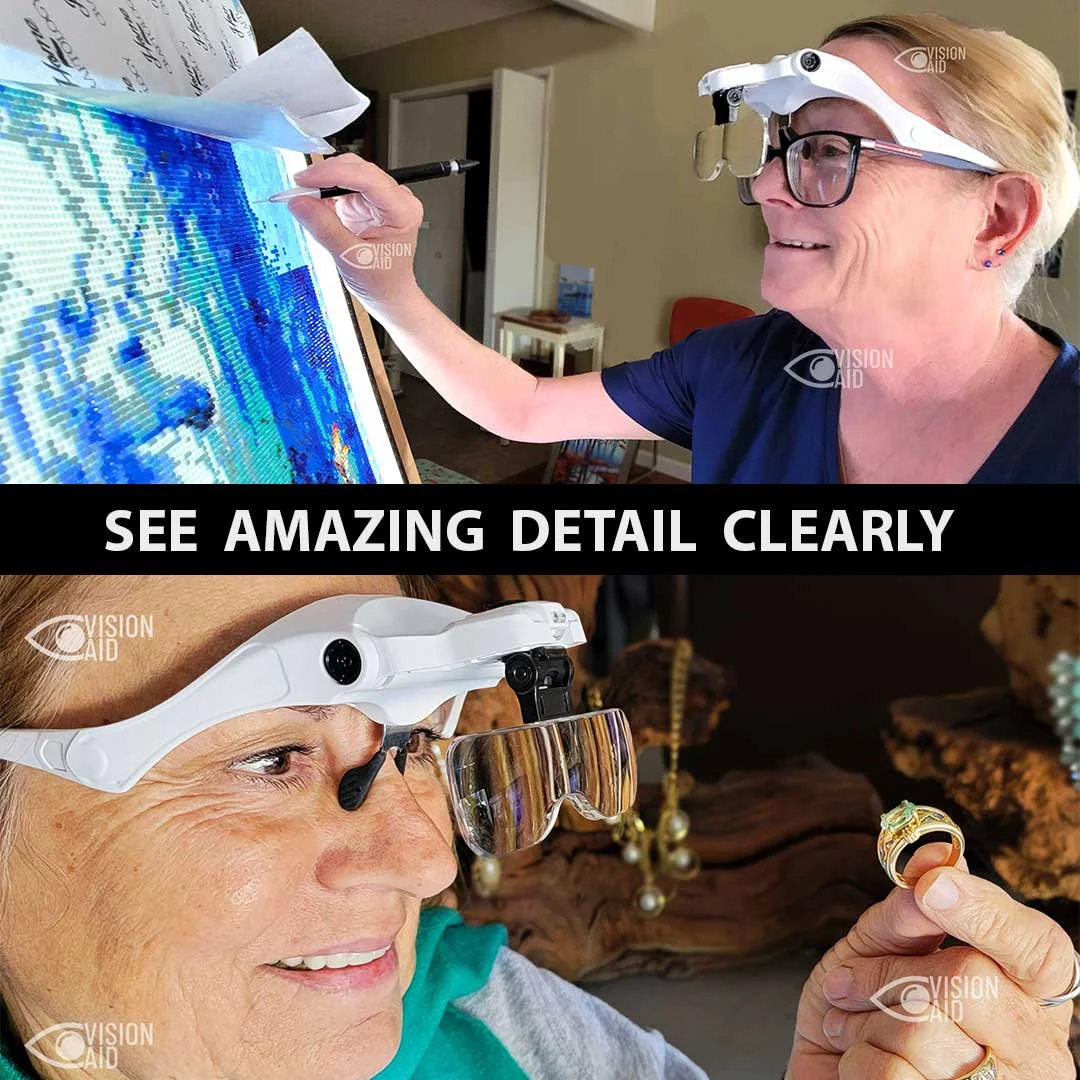 Ideal magnification for needlework, painting, jewelry making, beadwork, reading, macular degeneration, crafting. View your artwork better, and appreciate its beautiful colours in detail with the Vision Magnifying Glasses