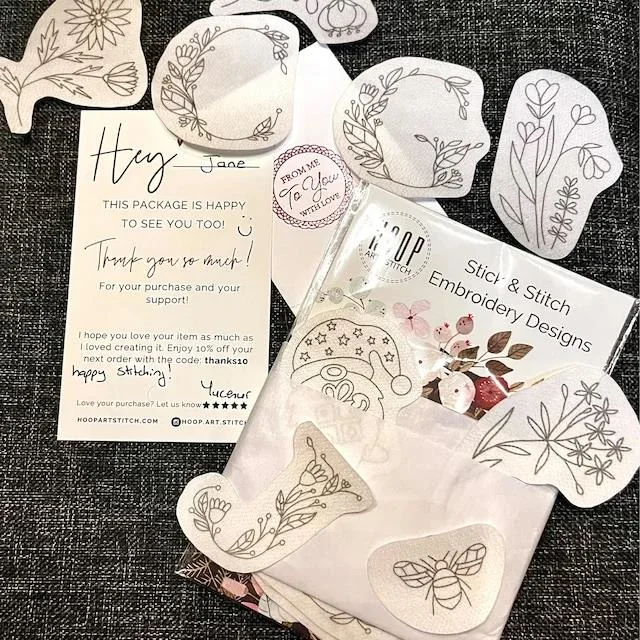 This little gem will revolutionize your DIY embroidery projects. Say goodbye to those pesky transfer patterns and hello to easy breezy stitching. Stick and Stitch patches are the name of the game when it comes to this template. No need to fuss with patterns any longer, just tear off the backing and stick it to your project area. Then, start stitching! When you're finished, soak or rinse the paper away with warm water, gently rub away any remaining bits, and let it dry. Voila! You're left with a gorgeous, personalized embroidery piece.