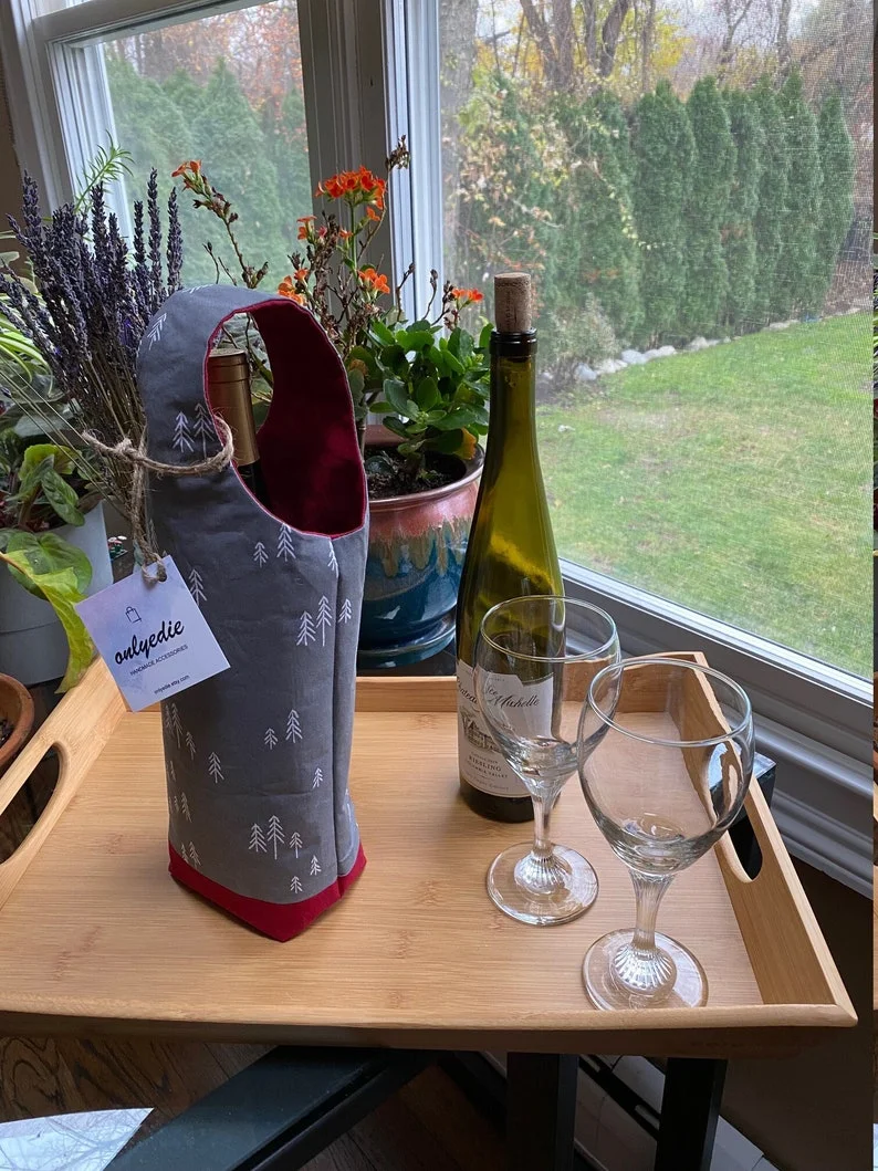 Fabric Wine Bag, Wine or Bottle Carrier, Great for tall bottles, Handmade, Lined and fused, Perfect for gift giving,This sustainable gift bags are reusable.